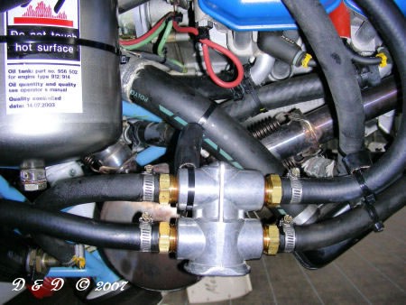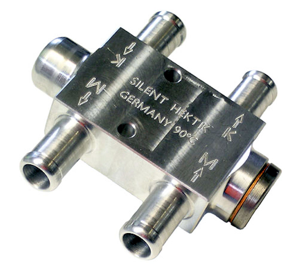 thermostat d'huile moteur à quatre voies pour commander la température de l'huile moteur.