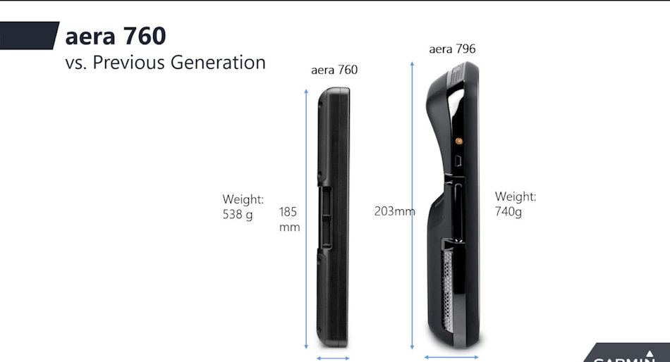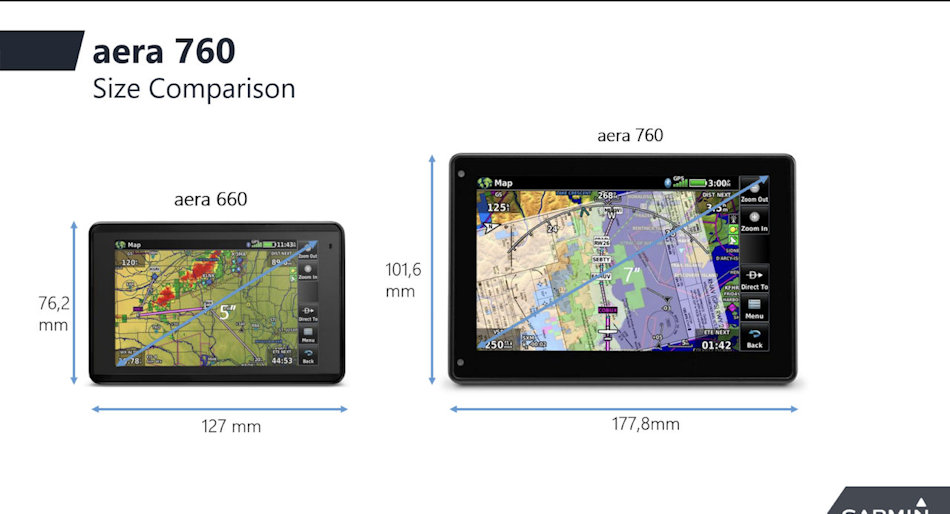 L'aera 760 dispose d'un écran tactile lumineux de 7 pouces lisible en plein soleil qui peut fonctionner sur batterie jusqu'à quatre heures avec une seule charge.