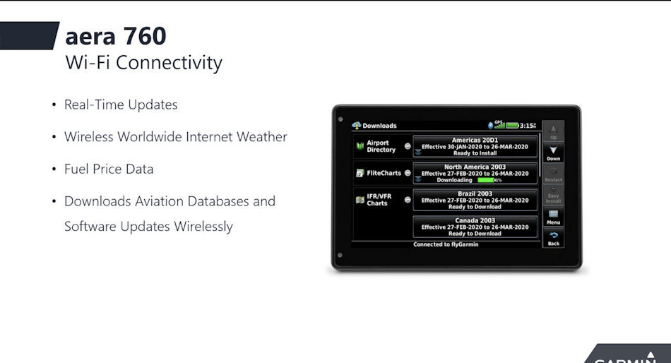Lorsqu'ils sont connectés au Wi-Fi, les pilotes peuvent facilement télécharger la base de données d'aviation et les mises à jour logicielles sans avoir à les connecter physiquement à un ordinateur.